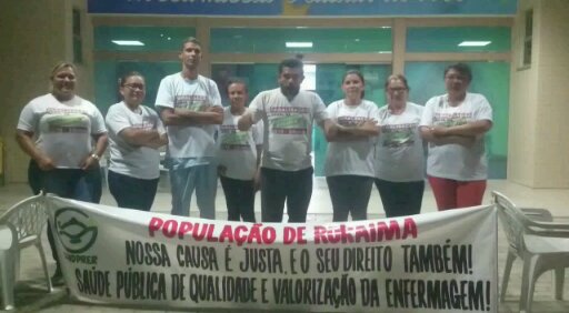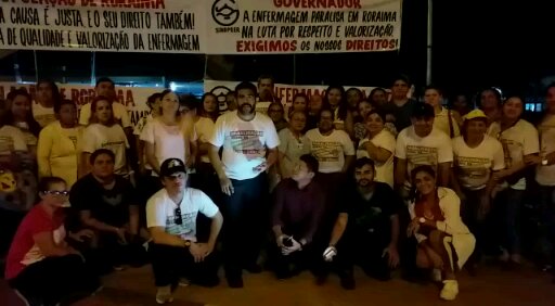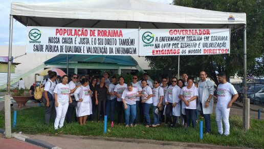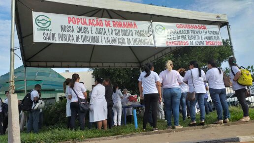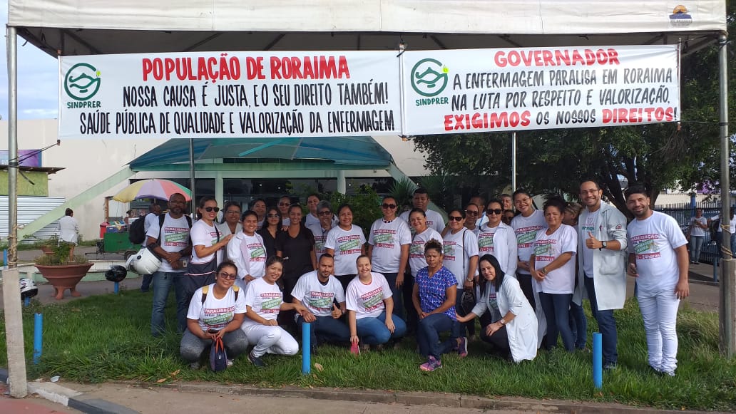 A paralisação da enfermagem iniciou-se as 07horas da manhã do dia 23/10/2019, permanecendo 30‰ por cento de profissionais em escala de rodizio, foi aderida em todo o estado de Roraima, a luta é ”Por direitos e não privilégios”. Os trabalhadores estão desvalorizados, SEM revisão Geral Anual desde 2016, SEM progressão Funcional e a Secretaria de Estado da Saúde com o orçamento de mais 647 milhões/2019 e com aumento no repasse do FPE, não apresenta nenhuma política de valorização do servidor no PPA 2020-2023, a enfermagem está entre as categorias com menor salário entre os servidores públicos do governo de Roraima, a categoria precisar da Modernização do PCCR e que seja incluso de imediato no PPA. Esses foi os principais motivos da paralisação, após varias tentativas de negociações e ofícios fracassados por parte da gestão em atendimento as demandas da categoria.